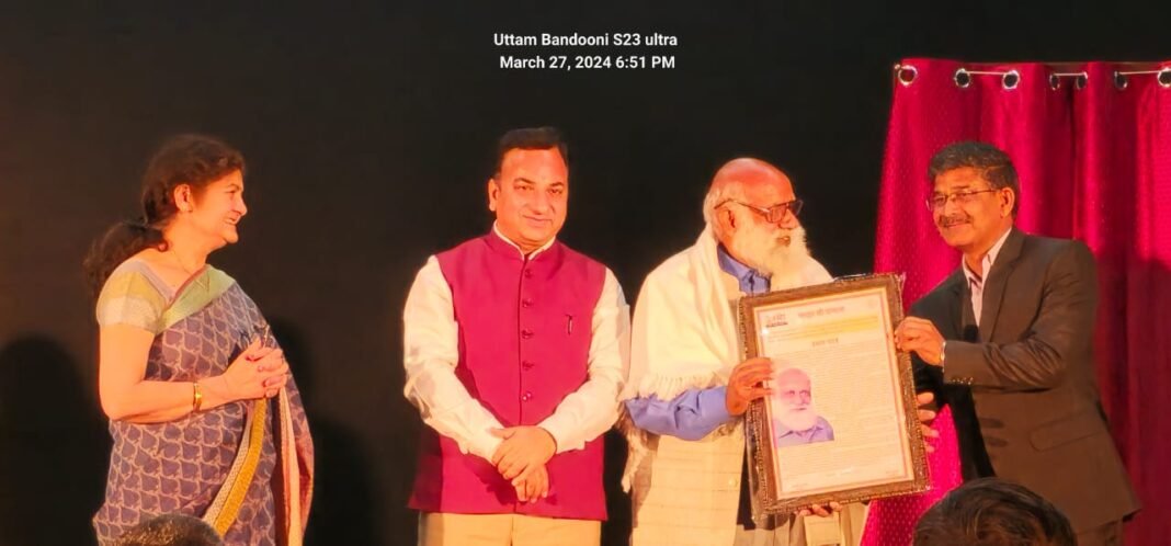 देहरादून। प्रतिष्ठित दून विश्वविद्यालय और उत्तर नाट्य संस्थान द्वारा दून विश्वविद्यालय में आयोजित विश्व रंगमंच दिवस समारोह में बुधवार को वरिष्ठ रंगकर्मी एस. पी. ममगाई को लाइफ टाइम अचीवमेंट अवॉर्ड से सम्मानित किया गया। उत्तर नाट्य संस्थान ने श्री ममगाई को रंगकर्म के क्षेत्र में उनके अविस्मरणीय योगदान के लिए सम्मानित करते हुए उनके दीर्घ जीवन की कामना की। विश्व रंगमंच दिवस पर उन्हें यह सम्मान सूचना विभाग के संयुक्त निदेशक के एस चौहान और दून विश्वविद्यालय के कुलसचिव एम एस मंद्रवाल ने प्रदान किया।