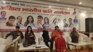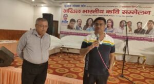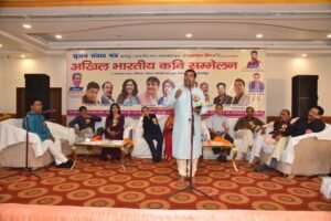 कवि सम्मेलन का शुभारंभ नैनीताल से आई कवयित्री गौरी मिश्रा द्वारा सरस्वती वंदना से हुआ। विवेक प्रजापति ने कहा –