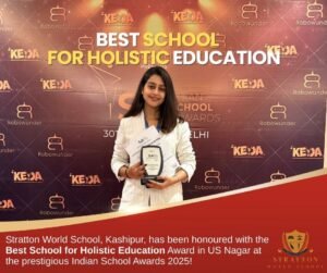 काशीपुर। रामनगर रोड स्थित स्ट्रेटन वर्ल्ड स्कूल को पूरे उधमसिंह नगर में बेस्ट स्कूल का अवार्ड मिला है। नई दिल्ली में आयोजित ‘बेस्ट स्कूल फॉर होलिस्टिक एजुकेशन मोस्ट क्रेडिबिल इंडियन स्कूल अवार्ड 2025’ के 30th एडिशन में स्ट्रेटन वर्ल्ड स्कूल को पूरे उधमसिंह नगर जिले का बेस्ट स्कूल घोषित करते हुए बेस्ट स्कूल फॉर होलिस्टिक एजुकेशन अवार्ड से सम्मानित किया गया। विद्यालय को यह अवार्ड विद्यालय के विद्यार्थियों के सर्वांगीण विकास के लिए दिया गया ।