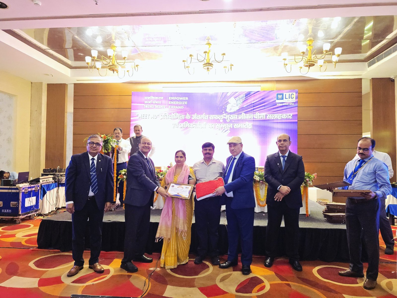 वाराणसी। काशीपुर स्थित सम्राट पृथ्वीराज चौहान ग्रुप ऑफ़ इंस्टीट्यूशंस के मैनेजिंग डायरेक्टर महेश सिंह चौहान को वाराणसी में भारतीय जीवन बीमा निगम द्वारा आयोजित कार्यक्रम में सम्मानित किया गया। यह कार्यक्रम वाराणसी स्थित काशी विद्यापीठ यूनिवर्सिटी में भारतीय जीवन बीमा निगम द्वारा आयोजित किया गया। इस दौरान भारतीय जीवन बीमा निगम के मैनेजिंग डायरेक्टर द्वारा महेश सिंह चौहान एवं उनकी धर्मपत्नी रेखा चौहान को जीवन बीमा निगम में लंबे समय से दे रहे अपनी सेवाओं के लिए सम्मानित किया गया। यह सम्मान भारतीय जीवन बीमा निगम द्वारा उत्कृष्ट प्रदर्शन के लिए दिया गया। महेश सिंह चौहान ने बताया कि वह भारतीय जीवन बीमा निगम के साथ लंबे अरसे से जुड़े हुए हैं एवं अपनी सेवाएं दे रहे हैं साथ ही यह सम्मान पाकर वह काफी गैार्बान्वित महसूस कर रहे हैं। इस दौरान सभी ने महेश सिंह चौहान को उनकी इस सफलता पर उनको शुभकामनाएं दी।