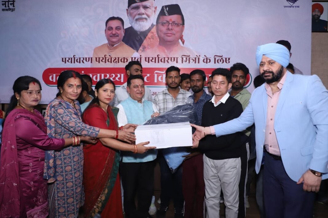 काशीपुर। काशीपुर नगर निगम के पर्यावरण मित्रों की लंबे समय से लंबित वर्दी और स्वास्थ्य सुरक्षा किट वितरण की मांग आज पूरी हो गई। नगर निगम सभागार में आयोजित विशेष कार्यक्रम में महापौर दीपक बाली ने 347 पर्यावरण मित्रों में से प्रथम चरण में 190 कर्मियों को वर्दी और स्वास्थ्य सुरक्षा किट वितरण किया।