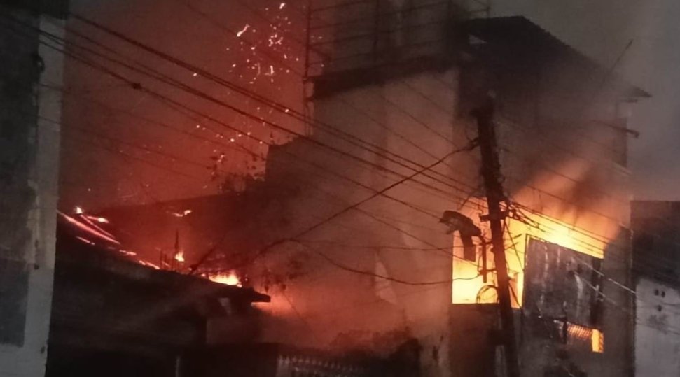 खंडवा। खंडवा के के घासपुरा क्षेत्र के एक मकान में अवैध रूप से भंडारण गए गैस सिलेंडरों में अचानक भीषण आग लग गई। जिससे दो लोग गंभीर रुप से घायल हो गए। आग लगने से लगातार एक के बाद एक गैस से भरे 17 सिलेंडर ब्लास्ट हो गए। गैस सिलेंडर से हुए धमाकों से क्षेत्र में अफरा तफरी मच गई । कुछ देर में फायर ब्रिगेड की टीम मौके करीब 1 घंटे कड़ी मशक्कत के बाद आग पर काबू पाया। प्राप्त सूत्रों के अनुसार शहर के घासपुरा क्षेत्र स्थित राजा पवार मराठा के मकान में रात्रि 8:15 बजे आग लगी। गैस सिलेंडरों में लगातार विस्फोट होने से आसपास के मकान में भी आग की चपेट में आने की संभावना को देखते हुए क्षेत्र को खाली करवा लिया गया है। हादसे में घायल हुए दो लोगों को होने पर खंडवा के जिला अस्पताल में भर्ती करवाया गया है जिला प्रशासन एवं पुलिस के वरिष्ठ अधिकारी मौके पर पहुंचे और घटना स्थल का निरीक्षण किया और जिला अस्पताल में भर्ती घायलों का हाल जाना।