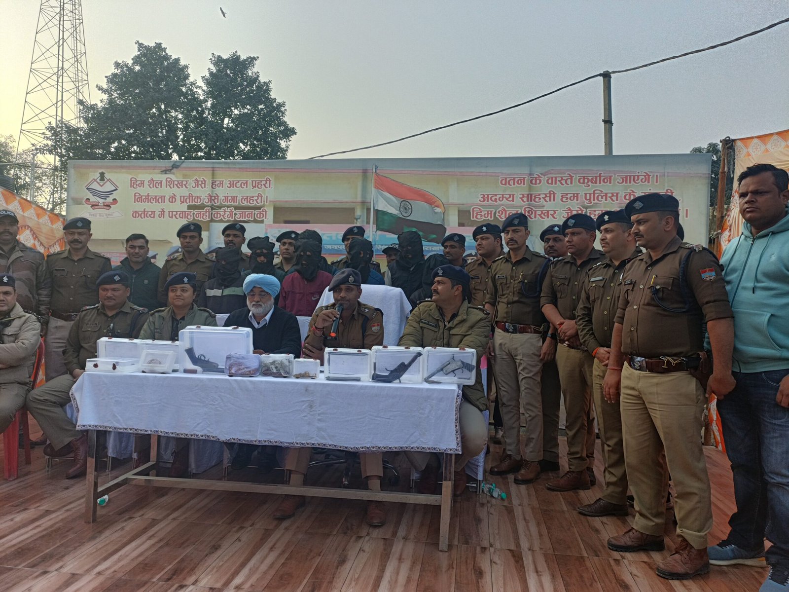 काशीपुर। पुलिस ने 19/20 दिसंबर की रात आईंटीआईं थाना क्षेत्र स्थित हनुमान कॉलोनी के पिता व पुत्र को बंधक बनाकर पड़ी सशस्त्र डकैती के मामले में 7अभियुक्तो को बंद पड़ी काशीपुर शुगर मिल परिसर से डकैती की योजना बनाते हुये गिरफतार किया है। पुलिस ने अभियुक्तों की निशानदेही पर हनुमान कालौनी काशीपुर के अलावा मूढापाण्डे जिला मुरादाबाद में डकैती का माल बरामद किया गया। एसएसपी मंजूनाथ टीसी नेमुखबिर व सीसीटीवी कैमरे कि मदद से पुलिस ने इस वारदात का पर्दाफाश कर दिया है। उन्होंने बताया कि सभी अभुियक्त शातिर किस्म के अपराधी है उत्तराखण्ड के अलावा उत्तर प्रदेश में भी कई जगहों पर डकैती डाल चुके हैं. अभियुक्त विनोद उर्फ विकास थाना मुढापाण्डे का हिस्ट्रीशीटर है। पकडे गए अभियुक्तों के नाम विनोद उर्फ विकास पुत्र धर्मपाल निवासी ग्राम सेजनी थाना चंदौसी जिला सम्भल (उत्तर प्रदेश), नरेश पुत्र कृपाल सिंह निवासी ग्राम ध्यानपुरा चकफेरी थाना काँठ मुरादाबाद (उत्तर प्रदेश), राशिद पुत्र शाहिद निवासी ग्राम बांसखेड़ा थाना आईटीआई, शमशेर उर्फ शेरा पुत्र कमल सिंह निवासी गुलजारपुर कुण्डेश्वरी थाना काशीपुर, अजय सेन पुत्र कुंवर सेन निवासी ग्राम खरमासा कालौनी कुण्डेश्वरी काशीपुर, देवेन्द्र पुत्र राजा राम निवासी ग्राम लालपुर थाना ठाकुरद्वारा जिला मुरादाबाद (उत्तर प्रदेश),नितिन पुत्र राकेश निवासी ग्राम गढी गंज प्रतापपुर थाना काशीपुर हैं। । पुलिस ने इनके कब्जे से पीली धातू के दो डिजायनदार कड़े, पीली धातू की एक लेडिज अंगुठी,पीली धातू के पाँच अदद पेंडेल,पीली धातू के एक अंगुठी, पीली धातू का एक झुमंका, पीली धातू की एक छोटी डिजायनदार नथ, पीली धातू की दो नोज पिन, पीली धातू का एक मांग टीका,पीली धातू का एक कुण्डल, पीली धातू का एक टूटा कुण्डल,पीली धातू की एक छोटी चेन, पीली धातू का एक अर्ध चन्द्राकार पेंडल के टूटे टुकड़े, पीली धातू के पांच टुकड़े, सफेद धातू की 06 पॉयल, सफेद धातू के 06 बिछुवें, सफेद धातू के दो हाथ के कँगन आदि व घटना में प्रयुक्त दो मोटर साईकिल बरामद की है। वहीं थाना मुढापाण्डे जिला मुरादाबाद में हुई लूट में पीली धातू का एक पैडल वाला मंगल सूत्र,