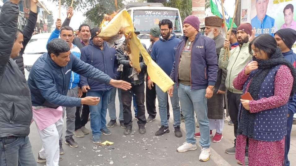 रामनगर। नाबालिग से दुष्कर्म के आरोपी चम्पावत भाजपा के मंडल अध्यक्ष की शीघ्र गिरफ्तारी की मांग को कुमाउं भर में सड़कों पर उतरे कांग्रेसी कार्यकर्ताओं ने भाजपा की धामी सरकार का पुतला दहन किया। इसी क्रम में रामनगर में हुए विरोध प्रदर्शन के दौरान निवर्तमान