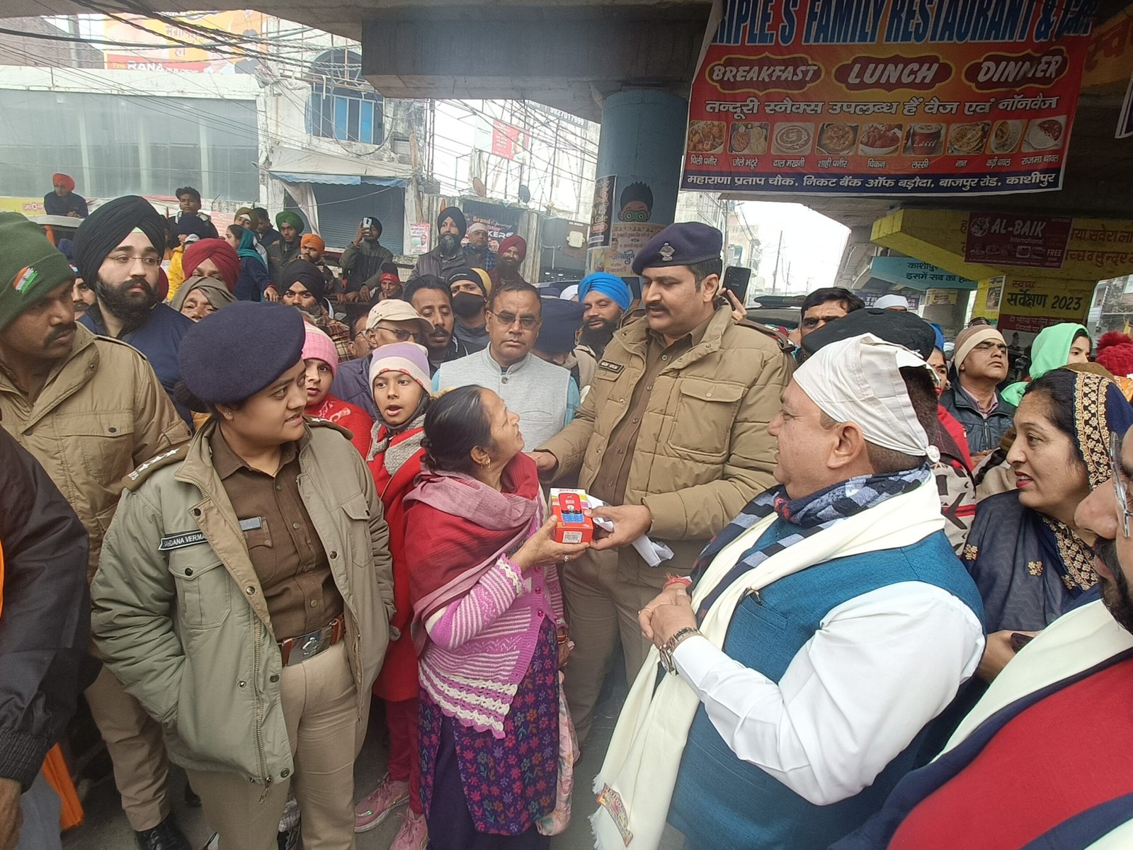 काशीपुर। शुक्रवार को सिखों के दसवें गुरु श्री गोविन्द सिंह के प्रकाशोत्सव पर नगर में निकले नगर कीर्तन व शोभायात्रा के दौरान भीड़ में कहीं मानपुर रोड निवासी बुजुर्ग महिला प्रवेश का मोबाइल गिर गया। मोबाइल खोने से उक्त महिला रोते हुए महाराणा प्रताप चौक पर नगर कीर्तन का अवलोकन कर रहे काशीपुर एसपी अभय सिंह के पास गई और आपबीती सुनाई। महिला को परेशान देख एसपी काशीपुर ने वहां खडे फोटोग्राफर प्रमोद सिंह बंटी को मोबाइल शॉप पर भेज नया मोबाइल मंगाया और पीड़ित महिला को सौंपा। जिससे महिला के चेहरा खुशी से चमक उठा। इस अवसर पर वरिष्ठ भाजपा नेता दीपक बाली, सीओ वंदना वर्मा, पार्षद गुरविंदर सिंह चंडोक आदि मौजूद थे।