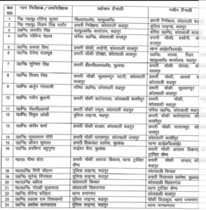 रूद्रपुर। तेजतर्रार पुलिस ऑफिसर इंस्पेक्टर धीरेन्द्र कुमार को रुद्रपुर कोतवाली का प्रभारी निरीक्षक बनाया गया है। जबकि इंस्पेक्टर विक्रम सिंह राठौर को पुलिस लाइन भेजा गया है। ऊधमसिंहनगर जिले में दो दर्जन पुलिस कर्मियों व प्रभारी निरीक्षकों के तबादले किये गये हैं। देर रात ये सूची जारी की गई। वरिष्ठ पुलिस अधीक्षक मंजूनाथ टी सी के आदेश पर किये गये सभी तबादले। की जगह धीरेंद्र कुमार को रूद्रपुर कोतवाली का प्रभारी निरीक्षक पद पर भेजा गया है। जिले के सभी थानों में ये फेरबदल किया गया है। काशीपुर की कटोराताल पुलिस चौकी से नवीन बुधानी को रमपुरा चौकी प्रभारी पद पर जबकि विपुल जोशी को उनकी जगह भेजा गया है।