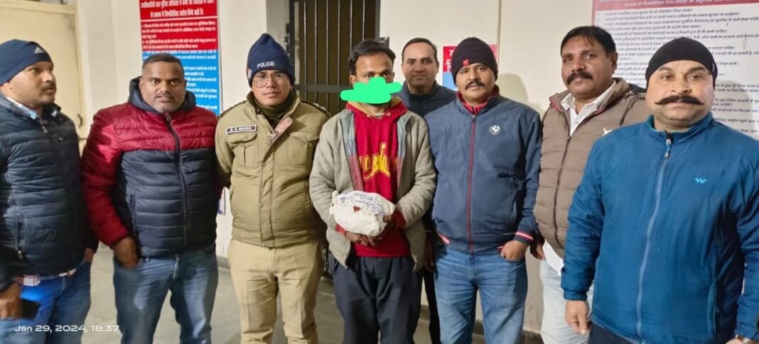देहरादून । उत्तराखंड राज्य में बढ़ते नशे की प्रवृति की रोकथाम हेतु *माननीय मुख्यमंत्री जी के उत्तराखंड में ड्रग्स–फ्री देवभूमि अभियान के तहत* एवं पुलिस महानिदेशक उत्तराखंड श्री अभिनव कुमार के दिशा निर्देशन पर *एसएसपी एसटीएफ श्री आयुष अग्रवाल द्वारा ड्ग्स डीलरों के विरुद्र कार्यवाही के आदेश के क्रम में* सीओ एसटीएफ कुमाऊँ श्री सुमित पांडे एवं प्रभारी निरीक्षक एएनटीएफ पावन स्वरुप के नेतृत्व में *ए.एन.टी.एफ टीम(एंटी नारकोटिक्स टास्क फोर्स) एवं जनपद नैनीताल के थाना मुक्तेश्वर पुलिस की संयुक्त टीम द्वारा* कल शाम को कार्रवाई करते हुए जनपद नैनीताल के थाना मुक्तेश्वर क्षेत्रअंतर्गत अंतरराज्यीय ड्रग्स तस्कर प्रकाश चंद आर्य पुत्र दीवान राम निवासी ग्राम दूदली तहसील धारी थाना मुक्तेश्वर जनपद नैनीताल को गिरफ्तार कर उसके कब्जे से करीब 1 किलो 542 ग्राम अवैध चरस बरामद की गयी।* गिरफ्तार अभियुक्त पिछले कई सालों से उत्तराखंड में चरस की सप्लाई कर रहा था. गिरफ्तार अभियुक्त ने *पूछताछ में बताया गया कि वह यह चरस अपने गांव से अलग-अलग व्यक्तियों से खरीद कर काठगोदाम/ हल्द्वानी आदि मैदानी क्षेत्र में बेचने जा रहा था.* ANTF टीम द्वारा अभियुक्त को पदमपुरी के पास से गिरफ्तार कर लिया गया।