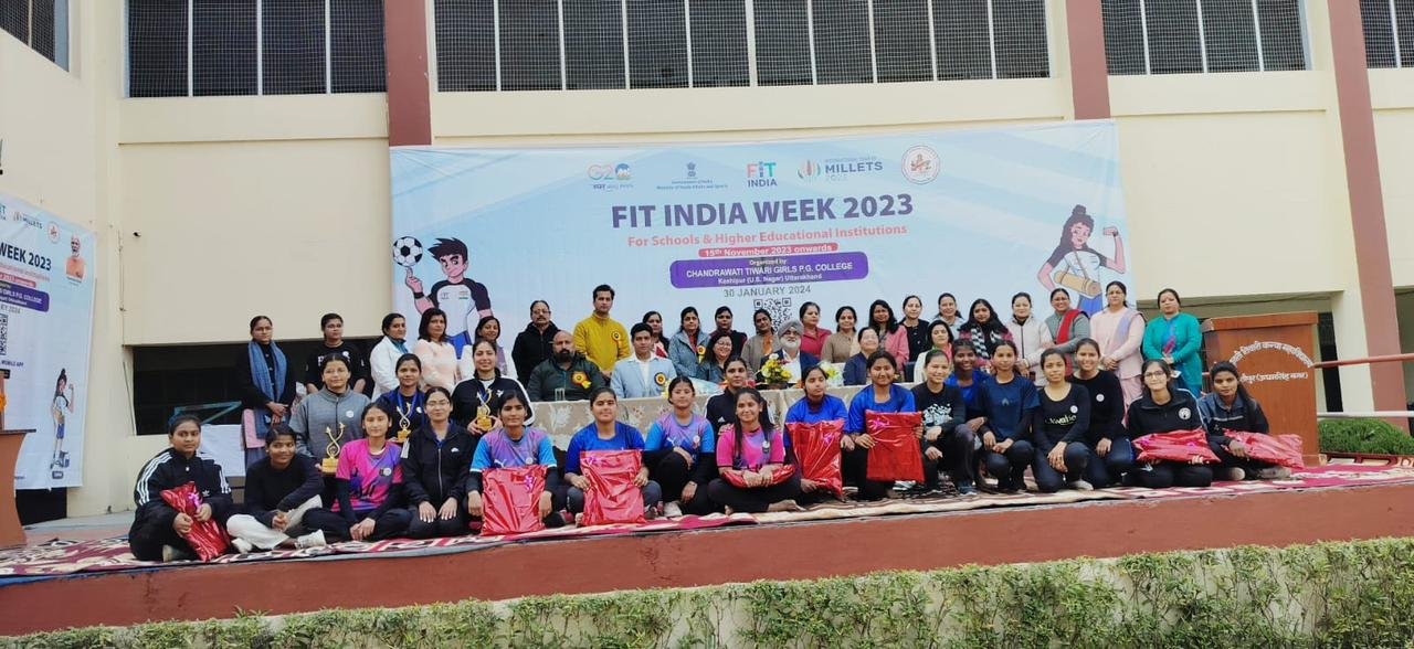 काशीपुर। चन्द्रावती तिवारी कन्या महाविद्यालय में आज भारत सरकार के Fit India कार्यक्रम के तहत Fit India Week 2023 का आयोजन किया गया। इस कार्यक्रम के अंतर्गत महाविद्यालय में आज योगा, कबड्डी, खो-खो, पोस्टर, रस्सा कस्सी प्रतियोगिता सम्पन्न हुई। प्रतियोगिता का उद्घाटन काशीपुर विधान सभा क्षेत्र के माननीय विधायक श्री त्रिलोक सिंह चीमा जी, स्पोटर्स अथोरिटी ऑफ इण्डिया (SAI) की टेबिल टेनिस की कोच श्रीमती ज्योति साह, महाविद्यालय प्राचार्या डॉ0 कीर्ति पन्त, एसोसिएट प्रोफेसर डॉ0 दीपिका गुड़िया आत्रेय ने संयुक्त रूप से माँ सरस्वती के समक्ष दीप प्रज्ज्वलित कर किया।